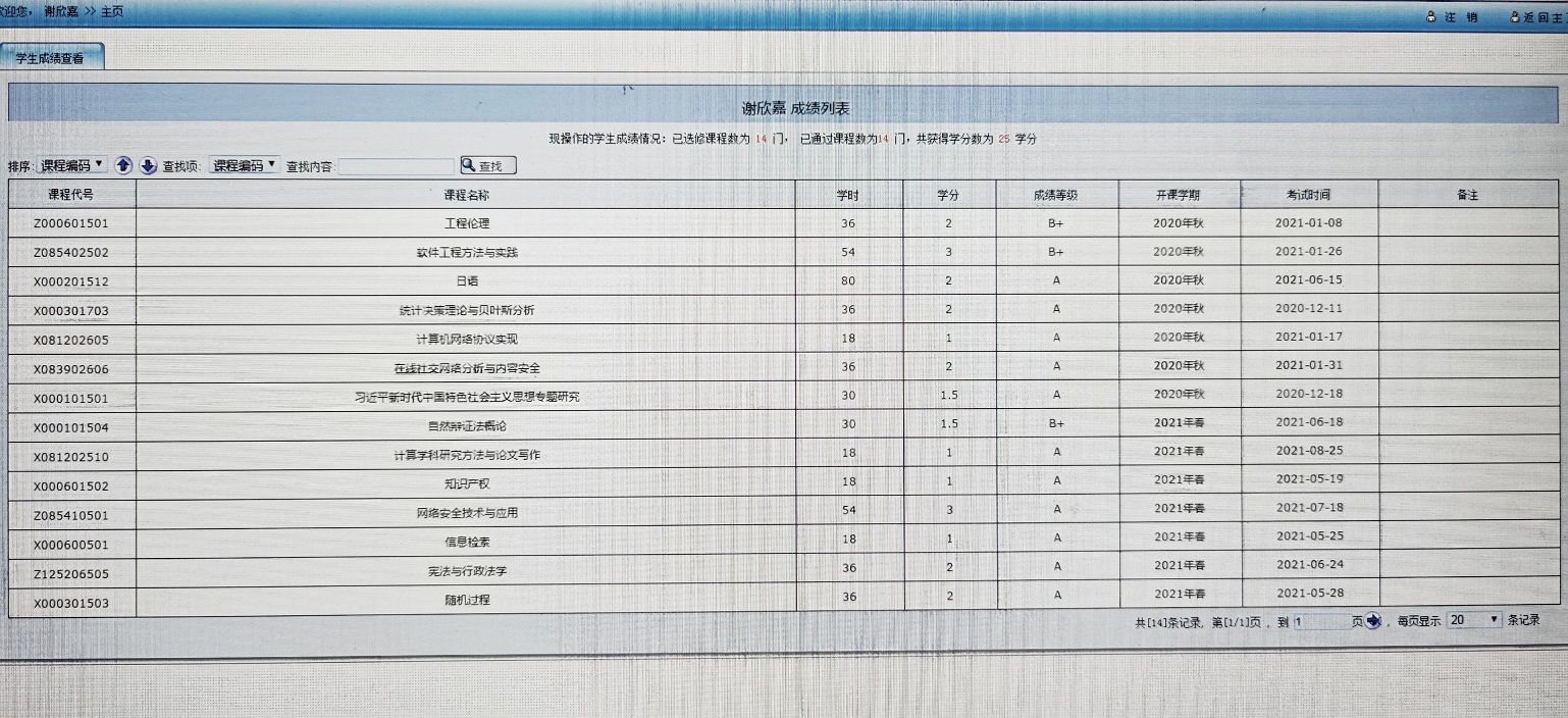 复习两个小时考过金融方面的证书,14门课11个A,3个B+,英语六级耳机坏了最后抱憾只考了600多分。